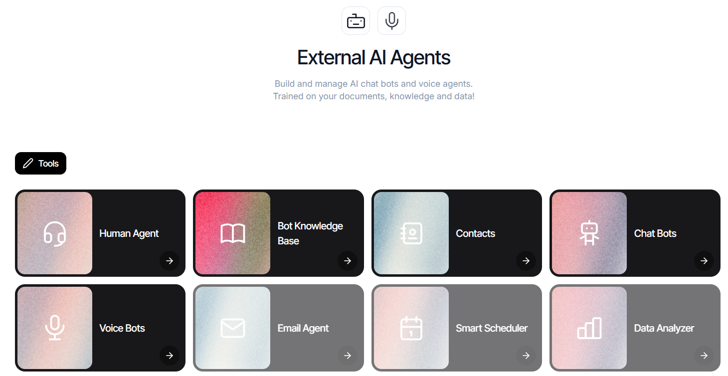 The AI Agents suite is where Sollo AI becomes a genuine business infrastructure tool. It includes: